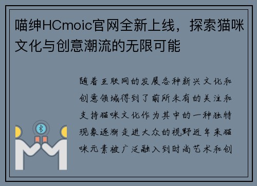 喵绅HCmoic官网全新上线,探索猫咪文化与创意潮流的无限可能